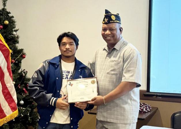 SAN ANTONIO – (Dec. 17, 2024) – Lastadt Valdez of Lanier High School spoke at the general membership meeting of Fred Brock American Legion Post 828.