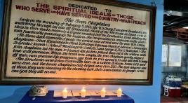 None of us said as much, but we were beginning to actually feel warm – the water, not so cold. I attributed this to the fact I had the good fortune to be wearing “Long Johns.” Strangely enough, I was no longer feeling sick. Sitting, hunkered into my foul-weather jacket, sliding up and down through the troughs I was no longer sick, go figure. I don’t know how long it took before the surf tried its best to dump us overboard. All I remember is that it was a long while before I realized someone had a grip on me at the back of my neck pulling me out of the raft up onto the beach. What had happened is that three officers from our base, two of them chaplains, when they saw we needed help, had ran into the surf dressed in full dress blues to make sure we made it to safety!