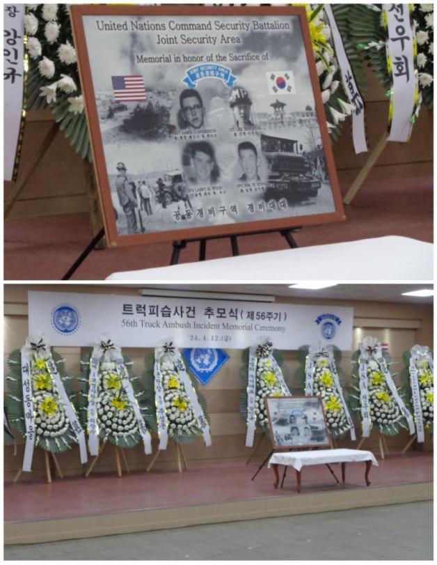 Commander Willian Scafe and Vice Commander Steve Tharp of Lewis L. Millett American Legion Post 38 attended the 56th Truck Ambush Incident Memorial Ceremony at Camp Bonifas, South Korea, on April 12, 2024. Camp Bonifas is a United Nations Command (UNC) military post located 400 meters (1,300 feet) south of the southern boundary of the Korean Demilitarized Zone. The 56th Truck Ambush Incident Memorial Ceremony honored the four UNC soldiers who were killed in action during the Truck Ambush also known as the Easter Ambush on Easter Sunday, April 16, 1968. The memorial ceremony honored the ultimate sacrifice of Sgt. James L. Anderson, Spc. Larry M. Wood, Cpl. Lee Son Kyoo and Pfc. Kim K. Hong.
