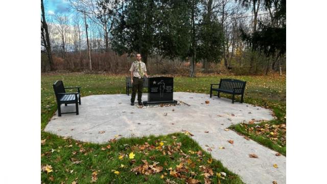 A Gold Star Families Memorial was dedicated at American Legion Park in Hollidaysburg, Pa., on Veterans Day, Nov. 11, 2025. The ceremony was the culmination of an Eagle Scout project started over two years earlier, sponsored by American Legion Post 516 in Hollidaysburg. The ceremony was a moving tribute that included the Pledge of Allegiance, an invocation and blessing of the memorial, the Eagle Scout project presentation and the memorial dedication, followed by taps. The Eagle Scout candidate responsible for the memorial is Michael Waibel from Boy Scout Troop 3032 in Hollidaysburg. Michael raised over $15,000 in cash donations, materials and work in-kind from local contractors to fund and complete his project. He is 17 and a senior at Hollidaysburg Area High School. He is the son of Nancy Waibel and resides in Duncansville. In his speech during the ceremony, Michael described the project and its purpose: “Gold Star Families, they give up so much by sending their family members into the military. That’s such a huge sacrifice, and I decided to honor them and honor their sacrifice and all they have given to our country.” This service project demonstrated Life Scout Waibel’s leadership and ability to plan and manage the project from start to finish. Waibel encourages the community to visit the Gold Star Families Memorial, which sits near the Veterans Memorial at the traffic circle at American Legion Park.