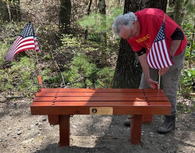 Each spring, Manning, along with Sons of The American Legion member John Kellaway, cleans the area around each bench and makes repairs as needed. They go on to apply fresh coats of sealer before posting two new American flags on each bench. For Veterans Day, Manning and Kellaway again clean the area around the benches and post fresh flags.