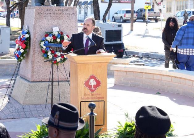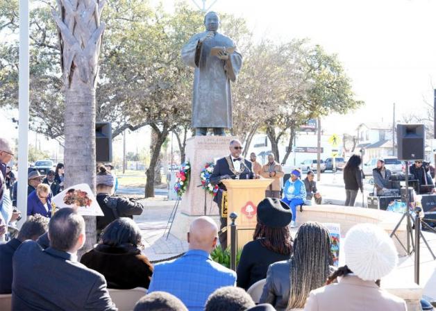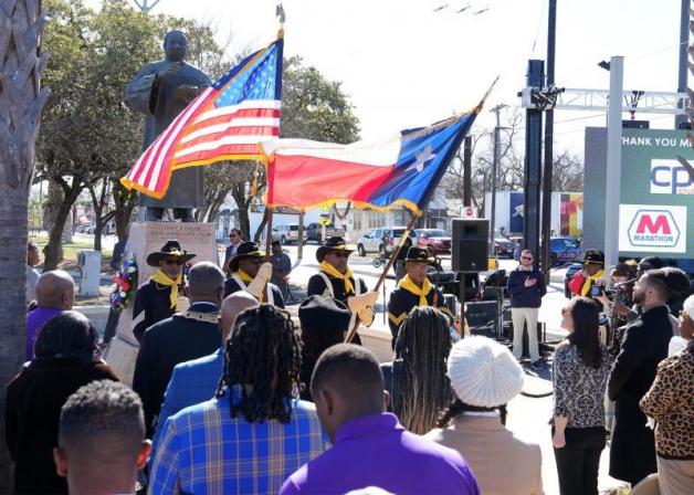 After presentation of the colors by the Bexar County Buffalo Soldiers Association and singing of “Lift Every Voice and Sing,” attendees heard welcoming remarks from State Sen. José Menéndez followed by Bexar County officials, City of San Antonio District 2 Council Jalen McKee-Rodriguez, MLK Commission Chair Dr. Doshie Piper and others.