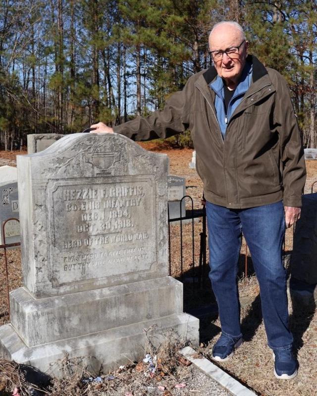 A local World War I hero - the late Hezzie Griffis, namesake of American Legion Post 30 in Edgefield, S.C. - received a special Christmas gift in 2025. Post 30 member J.W. “Pete” Peterson, a resident of Chandler, Ariz., was in town with his wife, Sandy, to visit family and attend Post 30’s annual Christmas party. A retired Air Force pilot, Peterson has a keen interest in military history and contributes regularly on the topic to the Post 30 monthly newsletter, Hezzie Gazette. While researching a short article on Griffis, Peterson came across a photo of his headstone and felt it was due for some attention.
