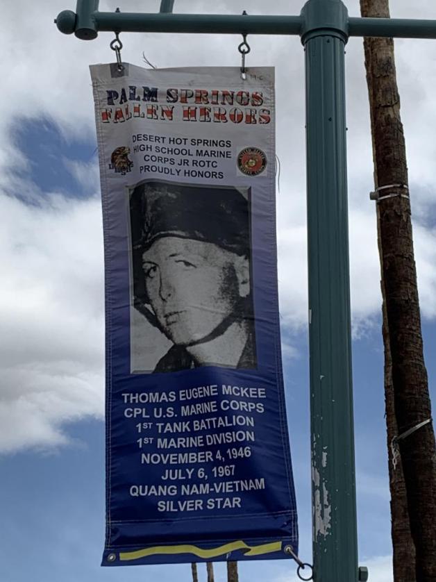 Hello from Post 519 in Palm Springs, Calif.! My name is Lee Wilson Jr. and I've taught World and U.S. History at Cathedral City High School, Palm Springs Unified School District, since 1997. I'm a member of our local VFW Post 1534 in Desert Hot Springs, DAV 66, and serve locally as the historian for American Legion Owen Coffman Post 519. Sadly, I am the only teacher in the Coachella Valley to have lost two former students on the War on Terror: PFC Ming Sun, CCHS class of 2004 KIA Ramadi, Iraq January 2007, and CWO2 Suresh Abayasekara Krause, CCHS class of 2001 KIA Kandahar, Afghanistan August 2012. Having served in the Marine Corps, I felt an obligation to honor their service and sacrifice as well as honor their Gold Star families. Our local teacher organization, the Palm Springs Teachers Association, has been most gracious in providing support and participation in the Palm Springs Veterans Day Parade. Roughly around the time Suresh was killed in action, I became the historian for our post. I floated the idea that we should help sponsor some sort of hometown hero banner program to honor Ming, Suresh and all the local fallen heroes from all our wars. Our post was built in 1948 and our memorial wall contains the names of the 16 local residents killed during World War II. I was surprised that there were no records of who these men were, where they fought, where they are buried, their branch of service, etc. So if I was going to honor Ming and Suresh with banners, I felt we needed to honor everybody. Over the years I've researched these names and learned about all 27 KIA/MIA from World War II, Korea and Vietnam, plus Ming and Suresh. I began to find sponsors for the banners. Several groups from our post helped to pay the costs of banners including our color guard, Auxiliary and Riders. Several years later, we now have fallen hero banners at the Palm Springs American Legion, and on display downtown during Veterans Day, Fourth of July and Memorial Day. Each of these Fallen Heroes Banners honors a local fallen hero. I'm still trying to find photos for a couple, but at least they're remembered. Of the local 27 KIA/MIA, 16 were graduates of the Palm Springs Unified School District. As a teacher, I know that each of these heroes had somebody who taught them patriotism, citizenship and service to country. It is an honor to have had that privilege and to teach men like Ming Sun and Suresh Abayasekara Krause.