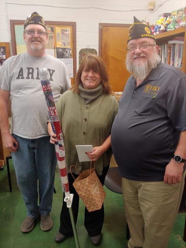 Throughout the week of Valentine's day Massillon post 221 presented a valentines tumbler and a flag for a teacher and presented a thank you card for all they do. Then they shared with them the Be the One bumper sticker and the program for it and how they can be the one.