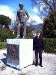 That next Friday night, we three were escorted into a stadium at Lackland with at least 25,000 military personnel in attendance. We were led backstage and met with the host of the show. He was a young, clean-shaven comedian with a wave in his hair named George Carlin. Carlin was not that well-known back in 1967, but he was a good comedian and host for the show. We three airmen came to represent the three sections of America: I played someone from New York, another pretended to be from Chicago and the third from California. We were each given a slip of paper with several sentences on it that we were to read to a woman on stage. I have to say that the text that I was given to read was more flattering to a woman than the other two had been given. Their text had them bragging about themselves. I was the third airman to get on stage, and after being introduced by Carlin, I was directed to sit on a bench with this fabulous, good-looking movie star, Fran Jeffries. I sat down next to her, reading and sometimes making mistakes reading, which came to be to my advantage. For example, I remember saying to her, "Oh, my princess, my darling, my jewel, my pet, I'll give you anything my heart desires, I mean, your heart desires." With that, the crowd of thousands went wild. I was supposed to kiss her after my little speech. I did, but I was so nervous that I almost knocked her and myself off the bench. Of course, I got a big response from that.