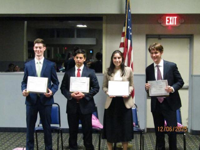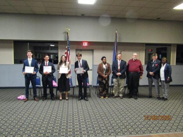 The Suffolk County Oratorical Contest was held at Joseph Loeffler Post 1006 on Saturday, Dec. 6, 2025. These talented high school students showed the audience their appreciation and knowledge of the U.S. Constitution. All of the contestants did an outstanding job, which made the judging difficult.