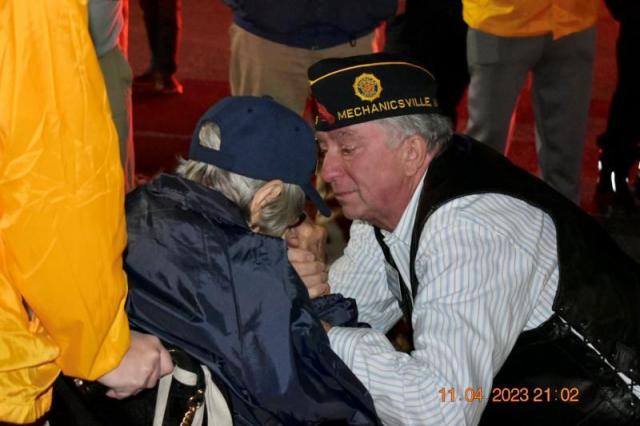 After a long day in Washington, visiting monuments and observing the changing of the guard at the Tomb of the Unknown Soldier, the veterans returned to a warm welcome by their community, family and friends at Post 175. Highlighting their return was a Hanover County ladder truck with an American flag hanging over the entrance, and several other apparatus and vehicles with their lights and sirens blazing and blaring, as well as first responders cheering, heralding their return.