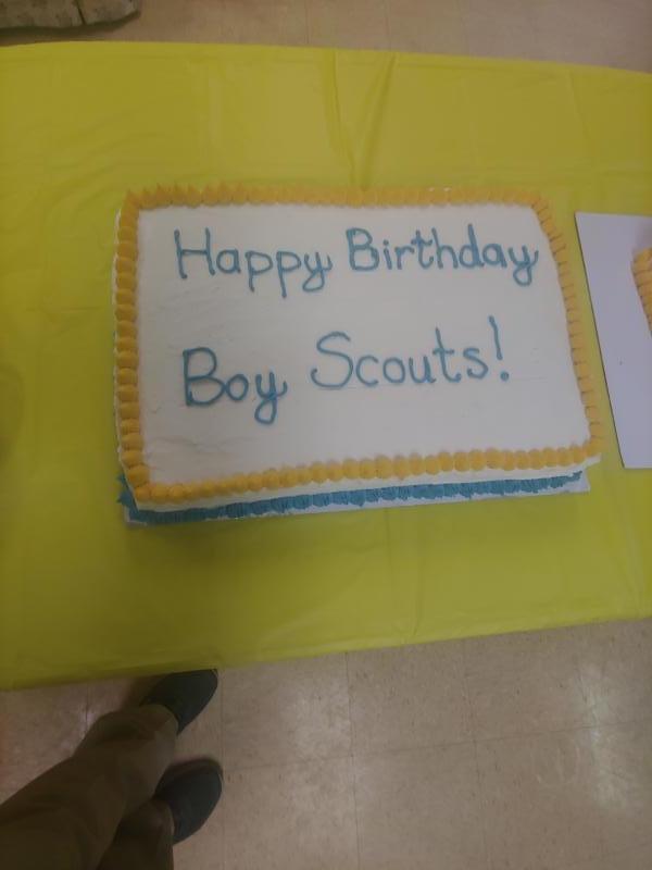 Today, Post 221 attended the birthday celebration of the Cub Scouts. One of the scouts told of his journey as a little boy to becoming an Eagle Scout. All the scouts and their families were there to enjoy some food and cake while some scouts received badges and the volunteers were thanked for helping.