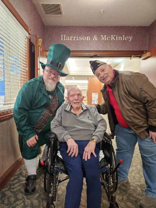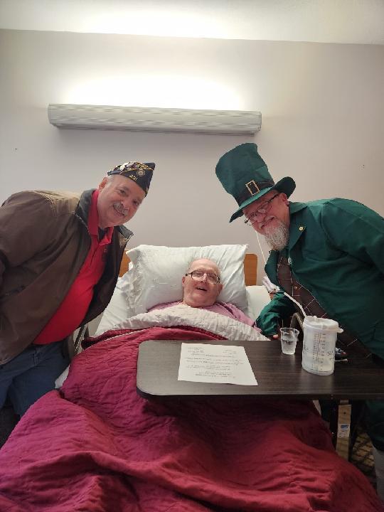 Howard Marrotto and Commander Larry visited veterans at a nursing home to say hello and give out happy times for veterans.