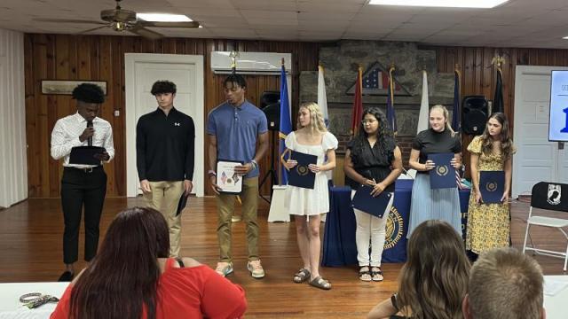 Boys and Girls State delegates for 2024 from local schools were presented with a Certificate of Appreciation for program accomplishments. Boys State delegates included Colt Bailey and Aiden Rearden from Wardlaw Academy, plus Brelan Baskett and Jimmy Bates Jr. of Strom Thurmond High School. Girls State delegates were Mattison McAbee, Paola Ramirez and Elizabeth McKee from Fox Creek High School in North Augusta, Ryan Raines from Strom Thurmond and Elizabeth Parks from Wardlaw Academy.
