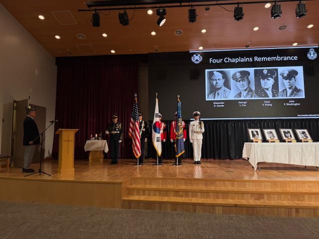 Col. Lewis L. Millett American Legion Post 38, South Korea, along with PFC Paul E. Finn Memorial American Legion Post 37, conducted the Four Chaplains Remembrance Service on Feb. 3, 2026. The ceremony was held at the Four Chaplains Chapel at Camp Humphreys, South Korea.