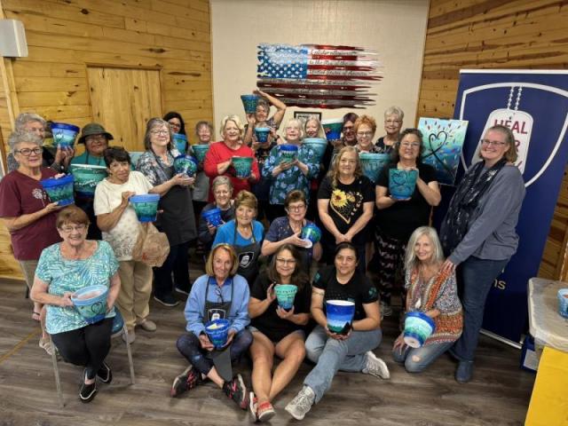 John D. Wibby American Legion Auxiliary Unit 86 hosted a free “Heal Her Art” event for our local, wonderful women veterans on July 19, 2025. Because we have a small community up here in our mountain town and our veterans have many non-veteran friends, we extended an invitation to all ladies to join our veterans for a small fee of $25. The theme was “Grateful Heart” and so, following some detailed lessons on painting the ceramic pots, the ladies grabbed their brushes and paint and got busy! After two hours of fun, laughter and painting, everyone ended up with their own creative and colorful flowerpots.