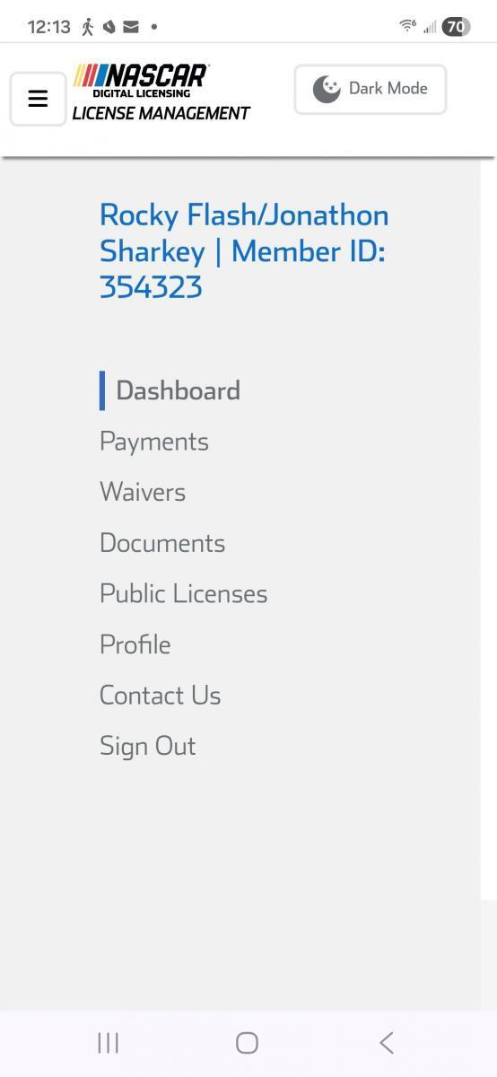 Jonathon Tepes Sharkey - better known in racing as Rocky Flash - was informed on March 3 by NASCAR Licensing that his request for a new driver's license was approved. On March 4, he received his digital license. Since Jonathon will be racing as Jonathon and also Rocky Flash, NASCAR made his membership under Rocky Flash/Jonathon Sharkey.