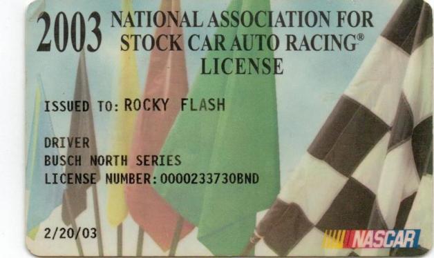 Jonathon held a NASCAR Busch Series License during the 2002 and 2003 racing seasons as solely Rocky Flash.