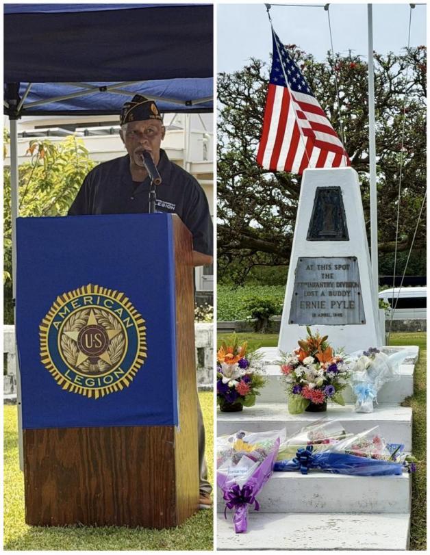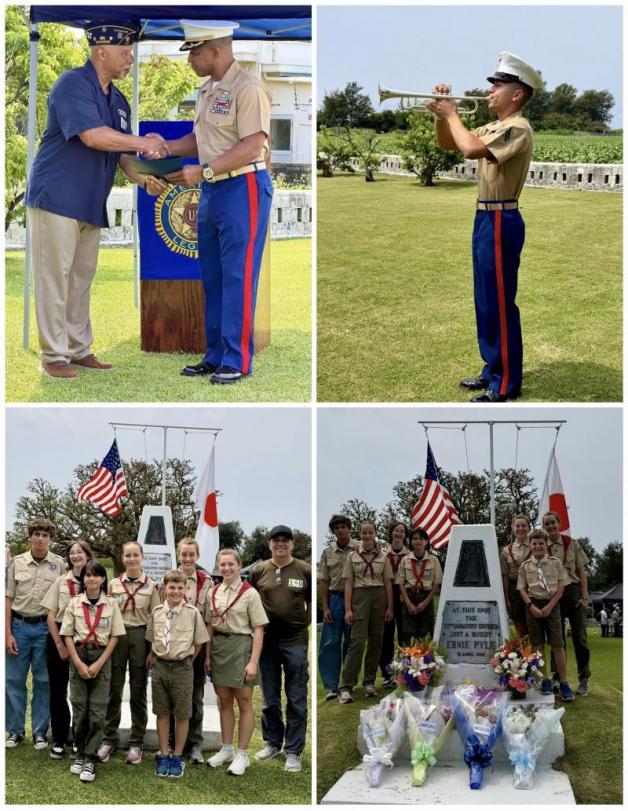 American Legion Post OK28 (Okinawa, Japan) held their annual Ernie Pyle Memorial on April 18, 2026. The memorial was held at the Ernie Pyle Monument on Ie Shima Island, 3 ½ miles off the western tip of the Mobuta Peninsula of west-central Okinawa, the site where Pyle was killed by enemy fire on April 19, 1945. The Legionnaires have held the memorial service at this site since 1952.