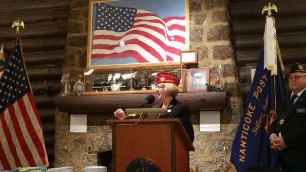 American Legion National Commander Denise Rohan had a chance to help American Legion Nanticoke Post 6 celebrate the Legion's 99th birthday in Seaford, Del., Thursday night.