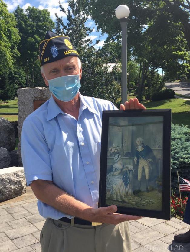 This year, Mattituck American Legion Post 861 honored Flag Day by hosting a brief ceremony on Saturday, June 13, 2020. With regulations of social distancing for the community noted, planned services for Flag Day had to be altered, and members of Post 861 followed protocol using those established guidelines. Post Commander Rob DeVito provided a brief history of the flag, and presented an authentic 44-star flag from his personal collection to display for the day. A small group of post members and local residents were in attendance for the ceremony, which was held at the post's monument.