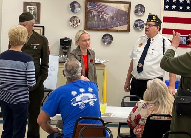 Shortly after the Ceremony was over, U.S. Congresswoman Victoria Spartz arrived. She had been visiting various Veterans Day events around her 5th District. She had originally planned on attending our ceremony, but got delayed at other events. The congresswoman took time to talk with everyone there both as a group and individually.