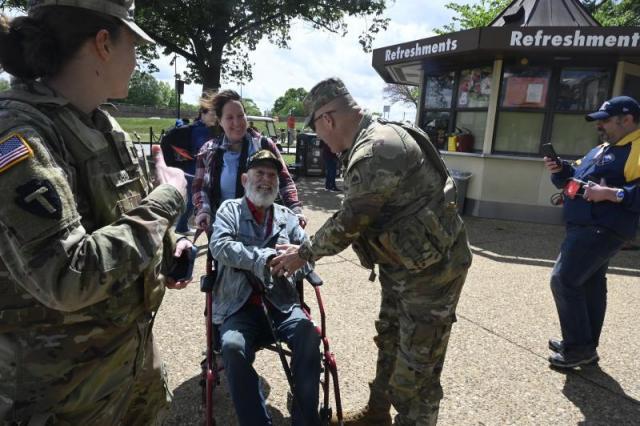 During our visit to the Jefferson Memorial, numerous unit members approached and spoke with our veterans, with support flowing from the top down. U.S. Army Brig. Gen. Leland D. Blanchard, commanding general (interim) of the D.C. National Guard, was one of the first to welcome our group.
