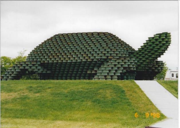Being from central Indiana, US281 was only going to be part of the trip. Once the journey began we found ourselves learning history and other facts about this great country. We saw memorials to Japanese internment camps, and discovered that Arkansas grew more rice than I'd ever imagined. Once we dead-ended at the Gulf in Louisiana, we headed west to follow the coast all the way to Brownsville. Once again we headed west and followed the Rio Grande to McAllen, Texas, where US281 starts, or ends, depending which direction you're headed. We traveled a leisurely pace and were able to see many interesting things along the way. We saw the geographical center of the US. We marveled at the "Wheel Turtle" in Dunseith, N.D., and admired the International Peace Garden on the border between the US and Canada.