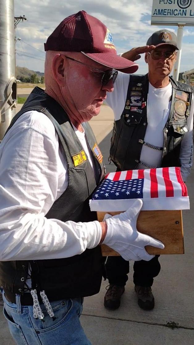 On Sept. 18, we American Legion Riders of Post 22, rode to Sturgis, S.D., and then to Alzada, Mont. to receive Herbert's urn. flag and plaque from the Montana Patriot Guard. We then escorted his remains from Alzada to American Legion Post 311 in Piedmont, S.D.