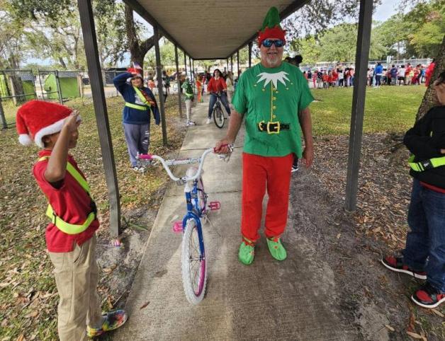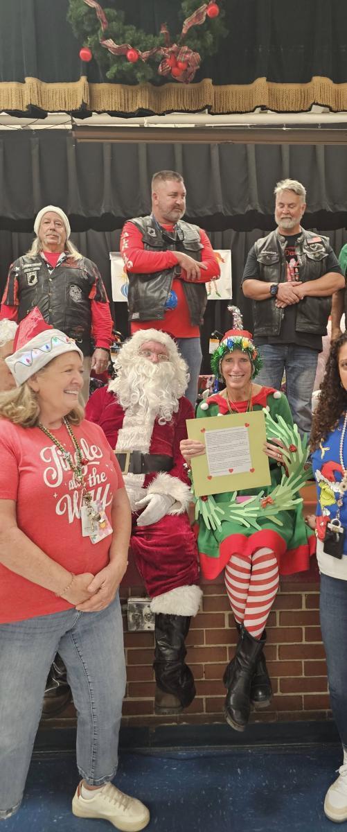 Each December, the veterans and Legion Family members arrive at Parkwood in a roaring line of motorcycles - affectionately known to students as “Motorcycle Santa and the Motorcycle Elves.” Students line the fences and walkways, cheering, waving signs and singing their Veterans Day songs as the Legion Family rolls in with bicycles, stuffed animals and gifts gathered through months of fundraising and teamwork.