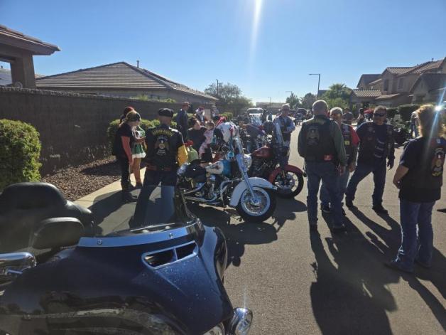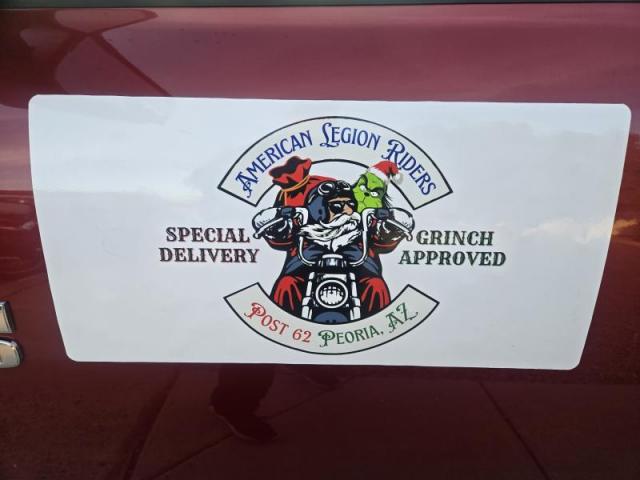 On Saturday the 13th, the John J. Morris Post 62 (Peoria, Ariz.) Riders delivered gifts to five families they had adopted. About 20 motorcycles rumbled the streets with Santa Claus, Grinch and an elf bringing smiles all along the way. With Santa leading the ride, every stoplight brought waves and smiles from cars all around. The families were all tied to active duty at Luke Air Force Base. The families, especially small children, were having a wonderful time. Cheers to the Riders and their Christmas spirit.