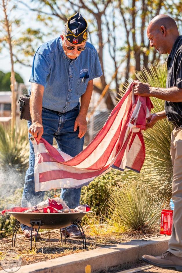 Special thanks go out to the Organ Mountain High School Naval Reserve Officers Training Corps honor guard for presenting the flag of our nation and providing overwatch of the flags for disposal.