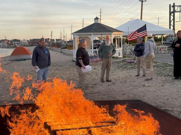 The event is unique and was attended this year by newly elected Sons National Commander William “Bill” Clancy III on his official visit to the Garden State. Clancy participated in feeding the fire as well, tossing pallets into the bonfire.