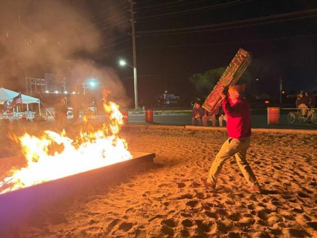 The fire is stoked by Sons and volunteers throughout the night, who stand vigil in memory of the missing.