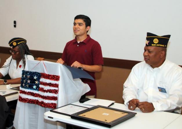 Prior to the installations, the membership and guests had the opportunity to hear from Highlands High School Senior Carlos Gonzales, one of eight high school students sponsored by the Post and H-E-B, who attended Texas Boys State on June 10-14.