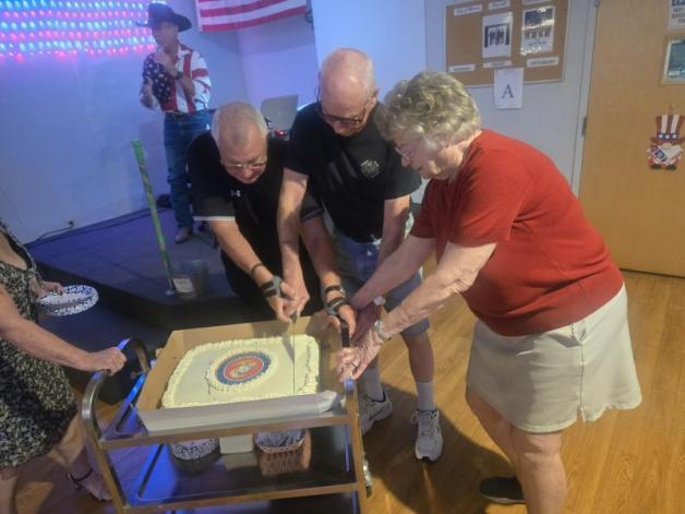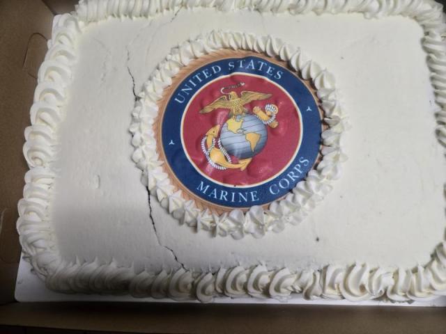 John J. Morris Post 62 (Peoria, Ariz.) honored the Marine Corps' 250th birthday. The Auxiliary had an amazing cake for everyone. Two of the Marines helped cut the cake. A video on veterans was played on the televisions, followed by everyone singing the Marine Corps anthem. Veterans from most of the branches were on hand to join in the celebration (no Space Force present). Semper Fi, Marines!