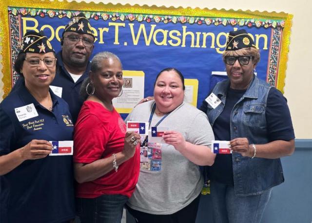SAN ANTONIO – (Nov. 19, 2025) – Continuing to assist local families on the East Side during the holiday season, Legionnaires of Fred Brock American Legion Post 828 donated $2,000 in H-E-B gift cards to 40 families of students attending Booker T. Washington Elementary, Martin Luther King Jr. Academy, Ferdinand Herff Elementary and Smith Elementary schools, all within the San Antonio Independent School District.