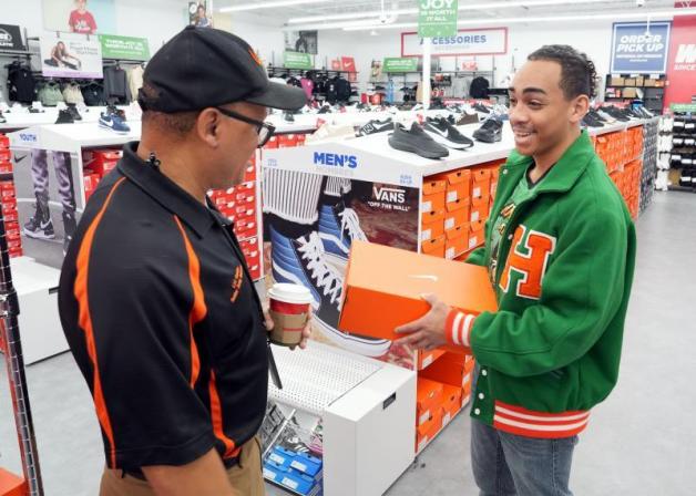 Students, accompanied by their parent(s) or guardian, were provided with a $100 budget to purchase new shoes along with any other item in the store. More than $10,000 was available for students to purchase new shoes and apparel.