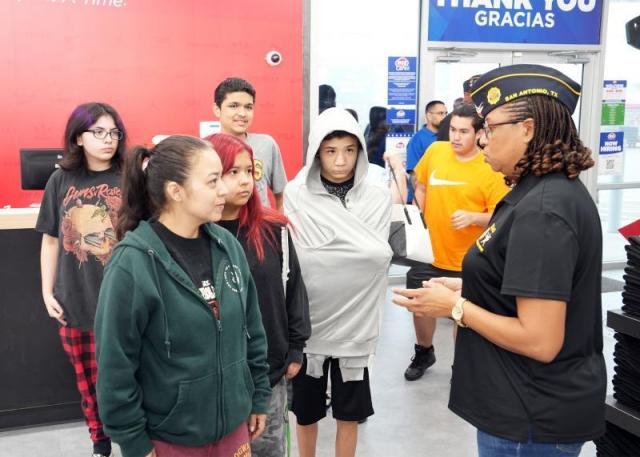 In support of one of its pillar programs, Children & Youth, Fred Brock Post 828, in cooperation with WSS, provided new shoes to JROTC cadets and students from East Side-area high schools during Project Shoes held at WSS’ Walzem Road location.