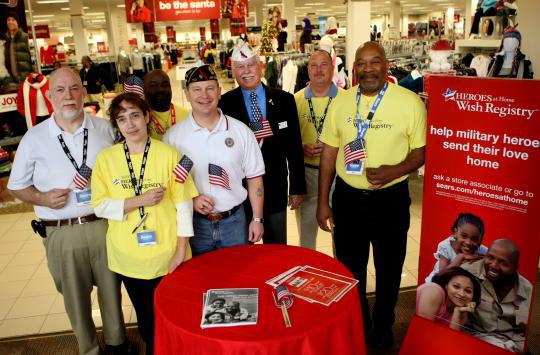 Gerald Rhodes (third from right), Department Vice Commander for the Eastern Region and Wes Latchford (fourth from right), 2nd District Vice Commander for Americanism, joined fellow Veterans employed at Sears in the Greenbrier Mall, Chesapeake, Virginia, to kick of the Sears Heroes at Home Wish Registry holiday fundraising drive.