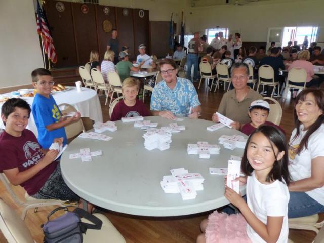 California's Newport Harbor Post 291 prepared for its Fourth of July celebration this year by utilizing its 10 Chartered Cub Scouts Packs, one Sea Cadet Battalion and parents to assist Legionnaires and Auxiliary with this year's event mailing.