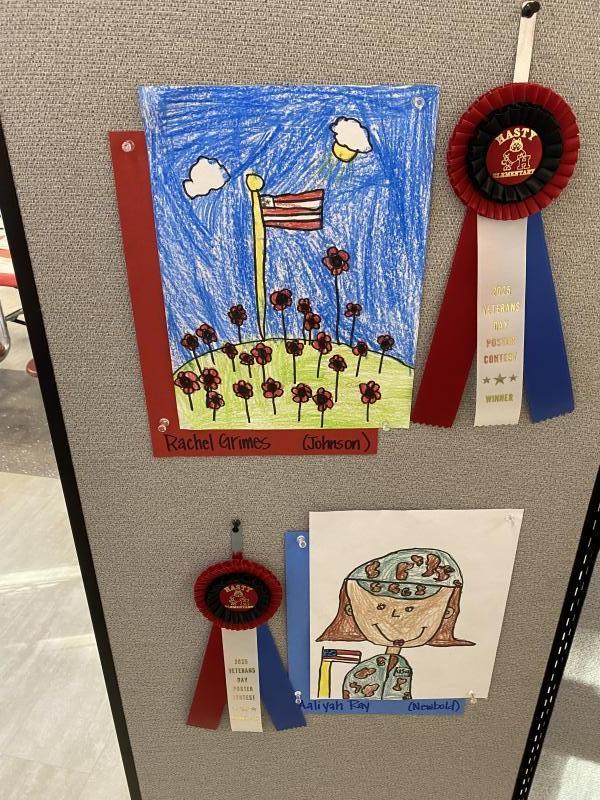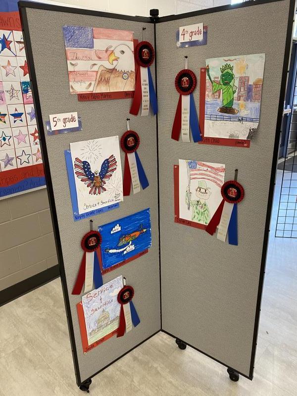 Each class working, with the school's art teacher, creates a theme for the poster contest and then submits them to the Legion for overall selection of the class poster contest winner and the overall school grand champion and reserve champion. Art prizes and ribbons for the winners are presented by the Legion to the winners, and all of the art poster contestants and their artwork are then displayed at the Veterans Day breakfast ceremony.