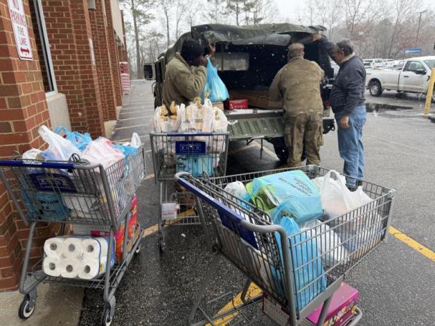 The unit's partnership with a local grocery store was interrupted when the store closed early due to the unusual snowstorm, causing a shortage of food for the soldiers during the mission. A call went out from Company C to Elgin's Veterans of Foreign Wars Robert R. Larson Auxiliary Unit 11079. The VFW contacted Lugoff's Larry Jeffers American Legion Post 195. The post and its Auxiliary Unit 195 allocated $600, and Unit 11079's Auxiliary chipped in $100. Post 195 members and the soldiers arrived at the Lugoff Food Lion, where the troops picked up the food to augment their MRE (Meal, Ready to Eat) combat rations.