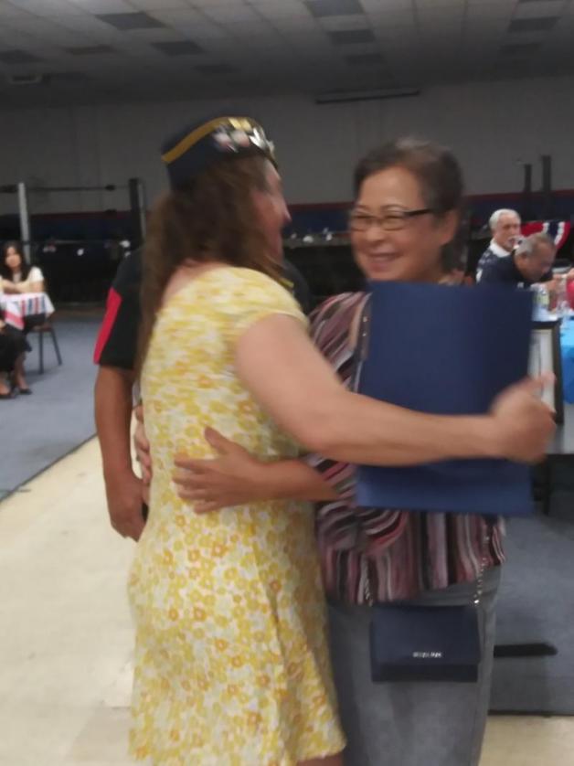 On Saturday, July 30, American Legion Post 655 of Haltom City, Texas, celebrated the new citizenship of Penphan Souvannachak. The wife of our long-term member Donald Souvannachak who many refer to as "Colonel." The post presented Penphan with a U.S. flag and a certificate of congratulations for her becoming a naturalized citizen of the United States. Her husband became a citizen after serving with Army Special Forces in Vietnam and was held as a prisoner of war. Once released, he remained in the Army and achieved the rank of colonel before retiring and being a very active member of Post 655.