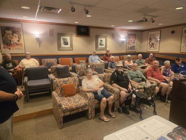 On Oct. 3, John J. Morris Post 62 had two of the publicity/community relations team reach out to the Wooddale Village senior living center. We were asked to come and address their monthly veterans club meeting. They are located about 5 miles from our post. There were about 17 of their members in attendance, and they came loaded with questions about the post. We supplied information on The American Legion, a calendar of our October events and more post information if they wanted it. Some had visited in the past for the fish fry and said they would definitely be back for the meal, but possibly for other activities too. They were surprised by how much takes place at the post and by its community outreach. We are always willing to talk with local groups to tell them about everything we are doing. A big thank-you to Jerry from the Wooddale Village veterans club for the invite.