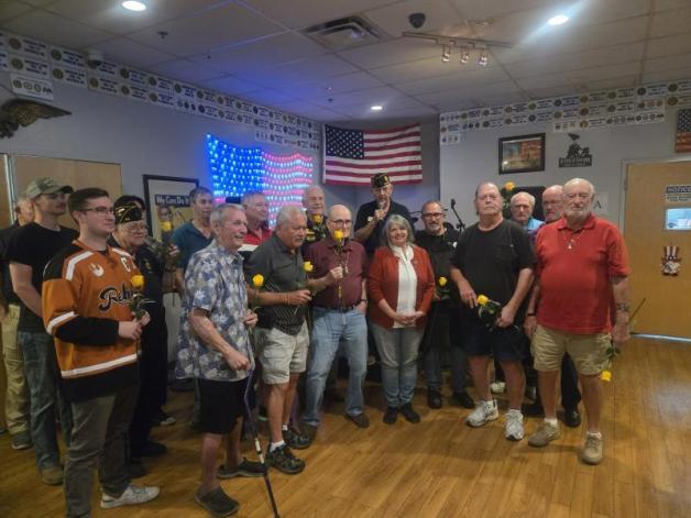 On Saturday, March 29, John J. Morris Post 62 (Peoria, Ariz.) hosted a ceremony for our Vietnam veterans. The Auxiliary presented roses to the veterans along with handshakes and thank-you's plus welcome-home buttons, a cake and more! This is the third year this ceremony happened at our post. You could see the appreciation in their eyes, but also standing together and talking with each other before going back to their seats. We also recognized three active-duty members who were visiting that night and helped with the event. They were all smiles. Welcome home, one and all!