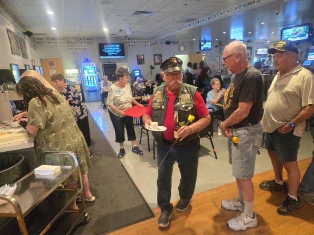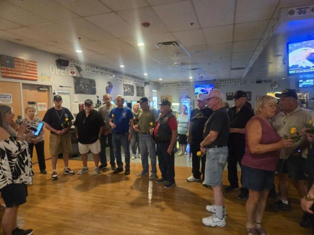 On March 25, John J. Morris Post 62 (Peoria, Ariz.) did a ceremony welcoming home our Vietnam veterans. They were never properly welcomed home from doing their job for our country. For the third straight year, the Auxiliary performed a ceremony for the Vietnam veterans welcoming them home. Following the 7:00 toast the Auxiliary presented roses to all the Vietnam veterans with flowers and then cake. The past Auxiliary president gave a welcome-home speech because our current Auxiliary president had knee surgery. All week you could hear the veterans talk about it - we have to be there Wednesday night for the ceremony - especially the Purple Heart veterans. We welcome them home and salute them for their patriotism!