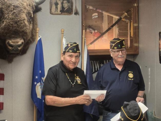On April 2, John J. Morris Post 62 (Peoria, Ariz.) continued working with the Ira H. Hayes Post 84 (Sacaton, Ariz.) with another meeting. Plans were continued on the Sept. 1 Veteran of the Month. Samples of April Veteran of the Month event flyers and pictures were distributed, along with a 62 license plate and 62 Legion Riders chips. Then 2nd Vice Commander Larry Tank made a presentation from Post 62, 62 Honor Guard and several individuals from Post 62. It was a donation of $2,750 toward their Honor Walk of 24 Pima Indian KIA. They shared a diagram of what the Honor Walk will look like. Veterans supporting veterans. Teamwork is always the way to accomplish things.