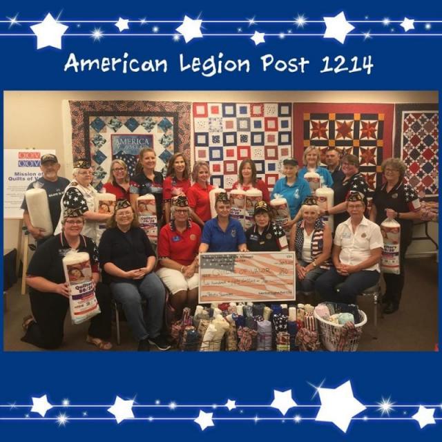 Thanks to donations by post members, as well as proceeds from a recent pancake breakfast fundraiser, Women Veterans of SW Missouri American Legion Post 1214 was able to provide a hefty boost of support to the local Quilts of Valor (QOV) program. This year, over 20 members attended the Ozark Piecemakers Quilt Guild's QOV reception to help present 202 yards of fabric, 14 rolls of batting and $250 to the Springfield, Mo., group. Locally, the QOV program has been in existence five years and to date has provided nearly 500 quilts to veterans in Southwest Missouri.