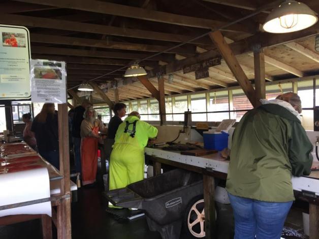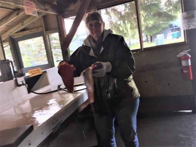 Today, 28 July 2019, close to 200 Sockeye salmon had to be taken out of the returning population, so the “troops,” so to speak, rallied. Under the direction of Sons member David “Ozzie” Osborn and his rallying call, we had members of all our American Legion Family respond in about an hour’s notice of the fish arrival (fresh out of the water). Post 5 member Scott Bartlett, who also just happens to manage the Military Recreation Camp, allowed the group to use the fish cleaning station and vacuum sealers for close to 200 fish that were fully, cleanly and rapidly processed by “the crew!” Several members of the Auxiliary, including Unit President Debbie VanTassel and newest member Kona Achterhof, were on station and busily filleting away! And, not to be outdone by the ladies, we had post member Dennis Bailey and Sons member Al Dykstra to round out the Legion Family in this effort. We even had some enthusiastic helpers jump in who saw the good the crew was doing - and will be joining our post!