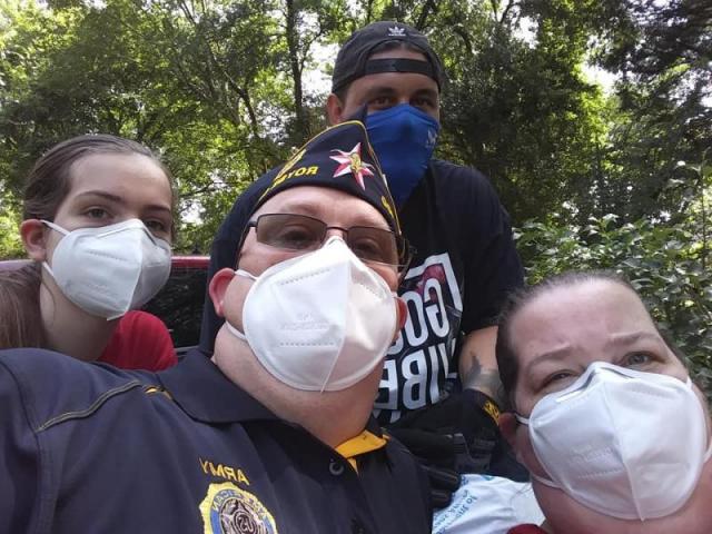 A few months ago we were given supplies to hand out to homeless people, but where we are located we generally don’t have but one or two who pass through our area. We reached out to a local nonprofit in a county over from us and they gave us a few possible locations. So we began packaging up all of the supplies and prepared to give them out. On Friday, July 3, members of The American Legion, American Legion Auxiliary and Junior Auxiliary went and delivered care packages to the homeless. The care packages had blankets, water, food and wash kits so they could clean up if they wanted to. At the first stop we only found one person, but when we stopped at our second location we found three separate encampments with a combined 20+ people. In talking with the person in charge we found out they were out of water and were drinking from a stream. In addition they told us about how people snuck into their camp last week while they were sleeping and set part of their camp on fire. Obviously hearing these stories pulls at every emotion you have, from anger to sadness and everything in between.