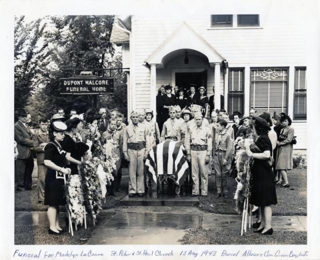 We have no firsthand accounts, so it’s impossible to know the exact whereabouts of Madelyn LaCanne on the day of the hurricane. We know she was at Ellington Field. We know that with no warning of the hurricane’s approach it must have been chaotic. We know, sadly, from her sister-in-law’s account: “she was hurled against a building on the airfield and suffered a brain hemorrhage.” Her obituary tells us she died in the station hospital Sunday evening, Aug. 8, 1943, from injuries sustained in the hurricane. Tragically, it was just 16 days past her 31st birthday.